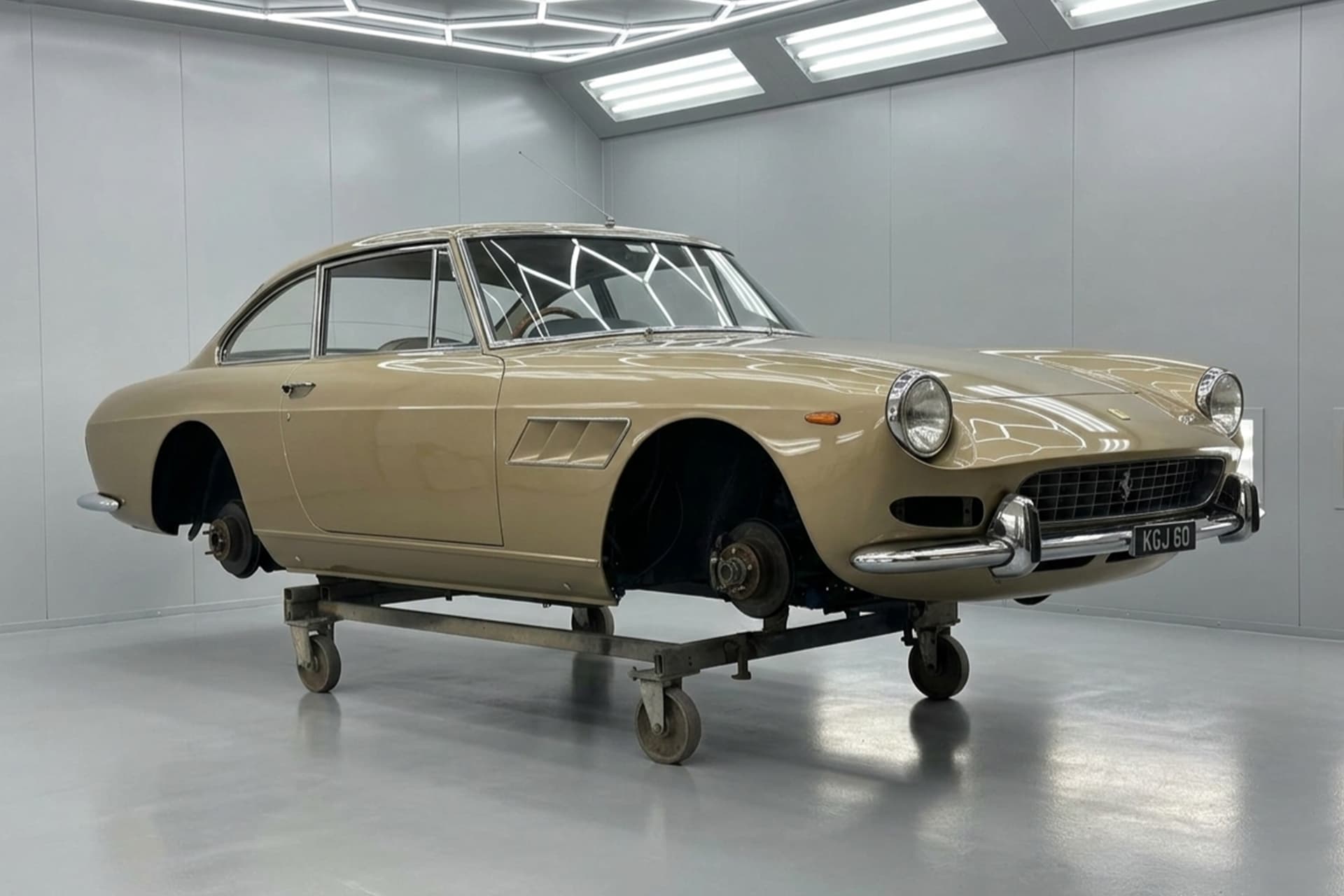 Today this Ferrari 330 GT is undergoing a detailed bare metal restoration at Bell Sport & Classic for a noted Ferrari collector. The final spec. includes a very special pale gold Oro Nashrullah.