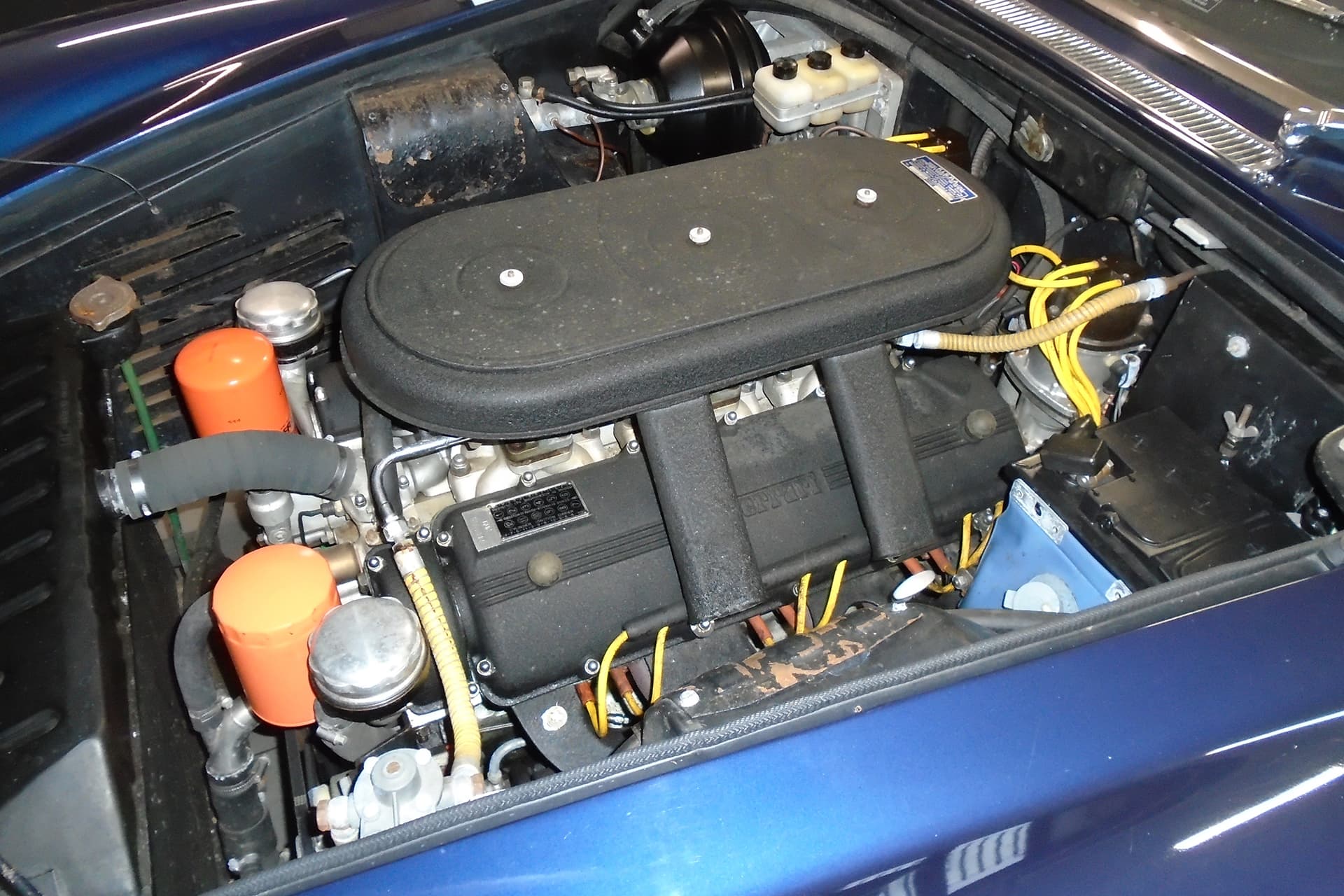 Bought used Mr JB Almond of Wigan Lancs who owned the car for a number of years before it passed through a series of ownerships during which the car was damaged and repainted. In the late 1970’s it was bought by noted Ferrari specialist Terry Hoyle who ran it for a few years then rebuilt the car returning it to the original blue with Borrani wheels.