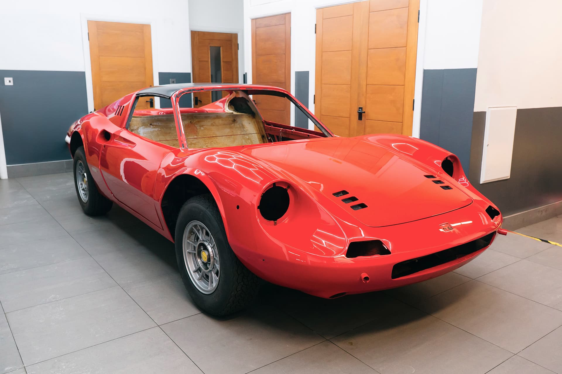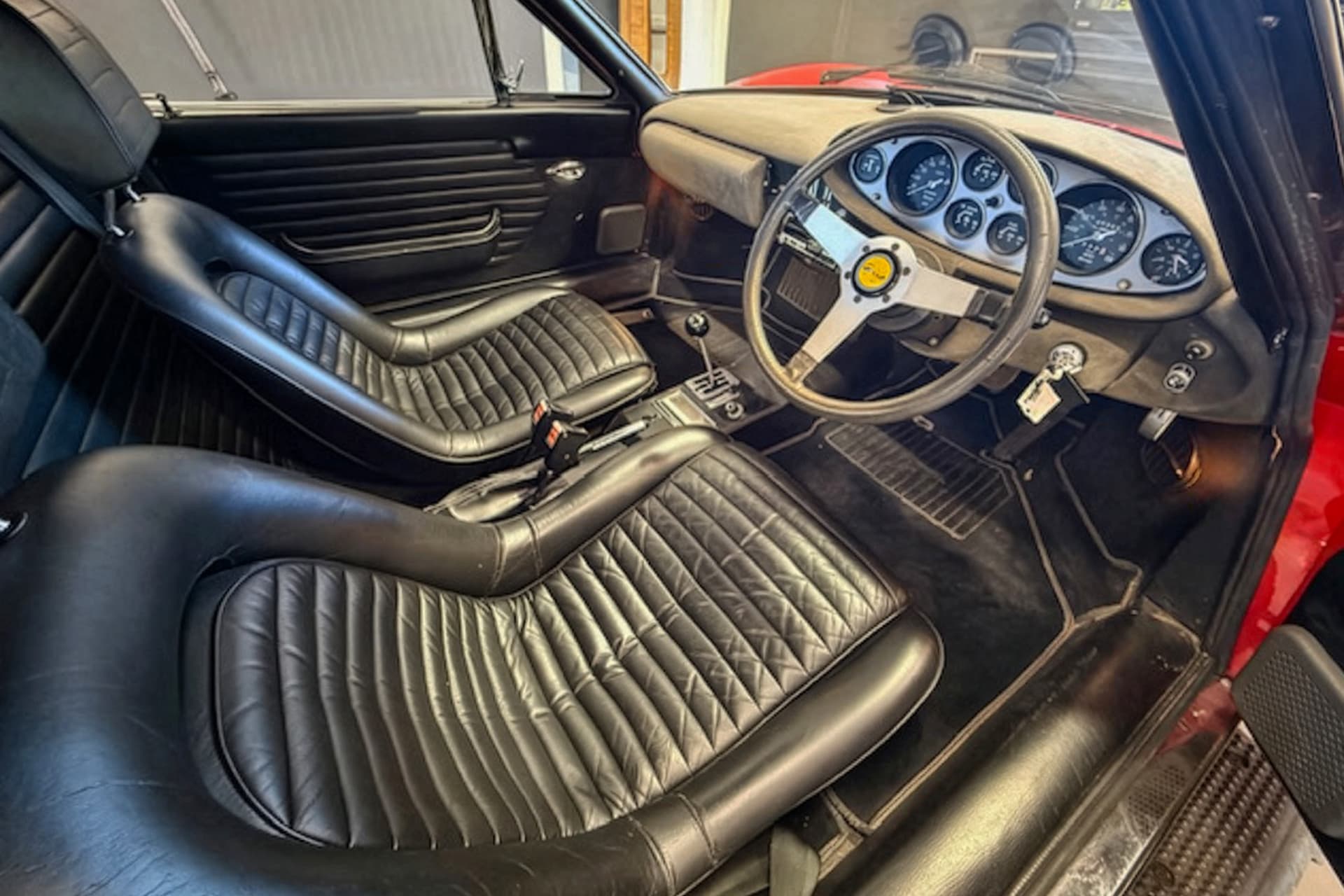 On the road, the Dino 246 GTS reveals its true brilliance. The steel chassis (an update over the earlier aluminium-bodied 206) provides reassuring rigidity, while fully independent suspension and four-wheel disc brakes deliver composure and confidence. Steering is unassisted, light once underway, and exquisitely communicative. The car feels small, alive, and perfectly balanced — a machine that rewards finesse over brute force.