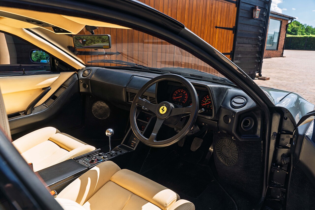 Grigio Ferro Metallic with Crema leather interior and Nero carpets. Accompanied by original book pack and substantial history file detailing ownership from new. A beautifully preserved Ferrari Testarossa in an extremely rare spec. (only two UK cars were delivered in this colour) with a fastidious previous ownership and detailed and documented service history. 40,850 miles