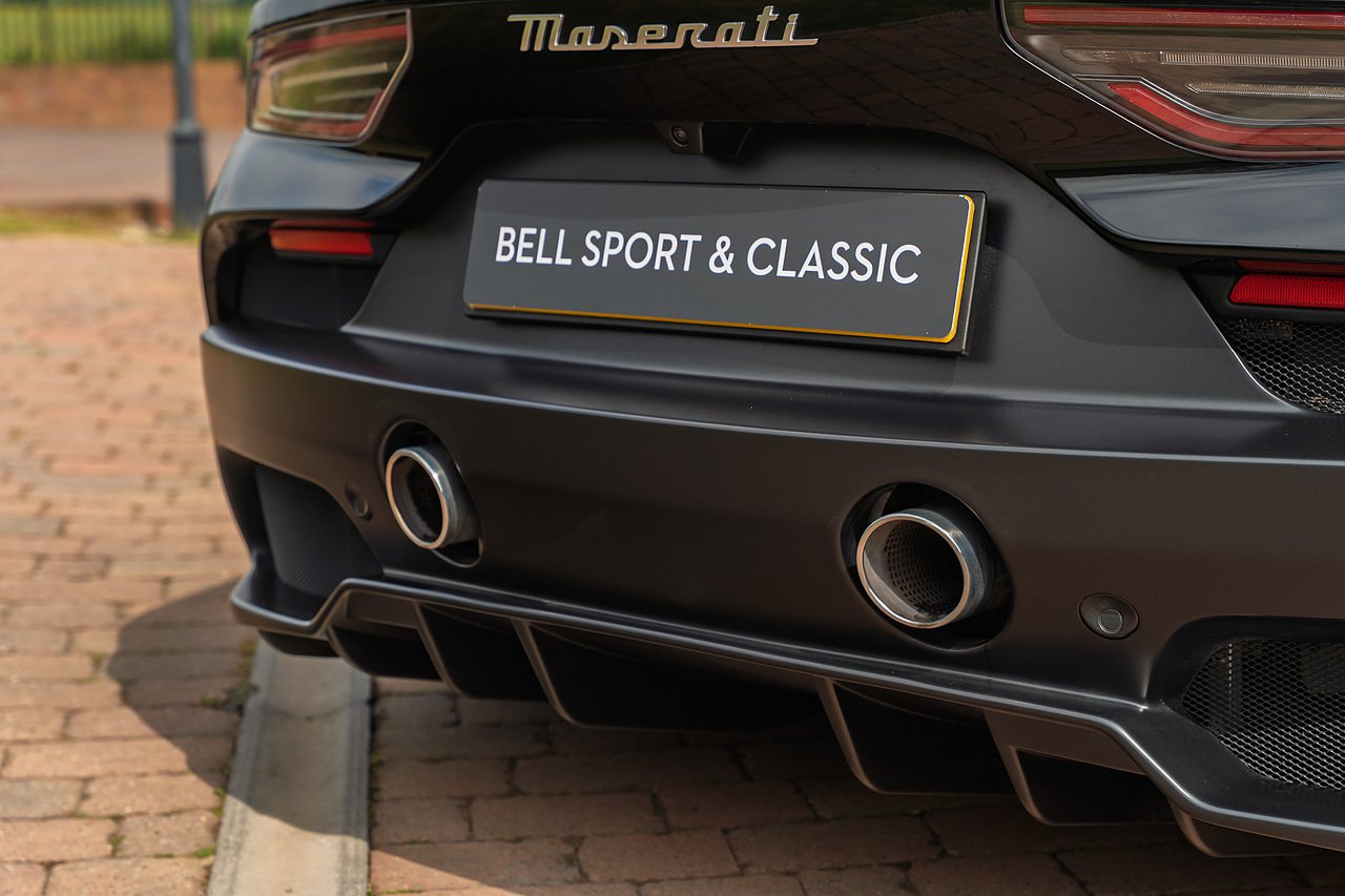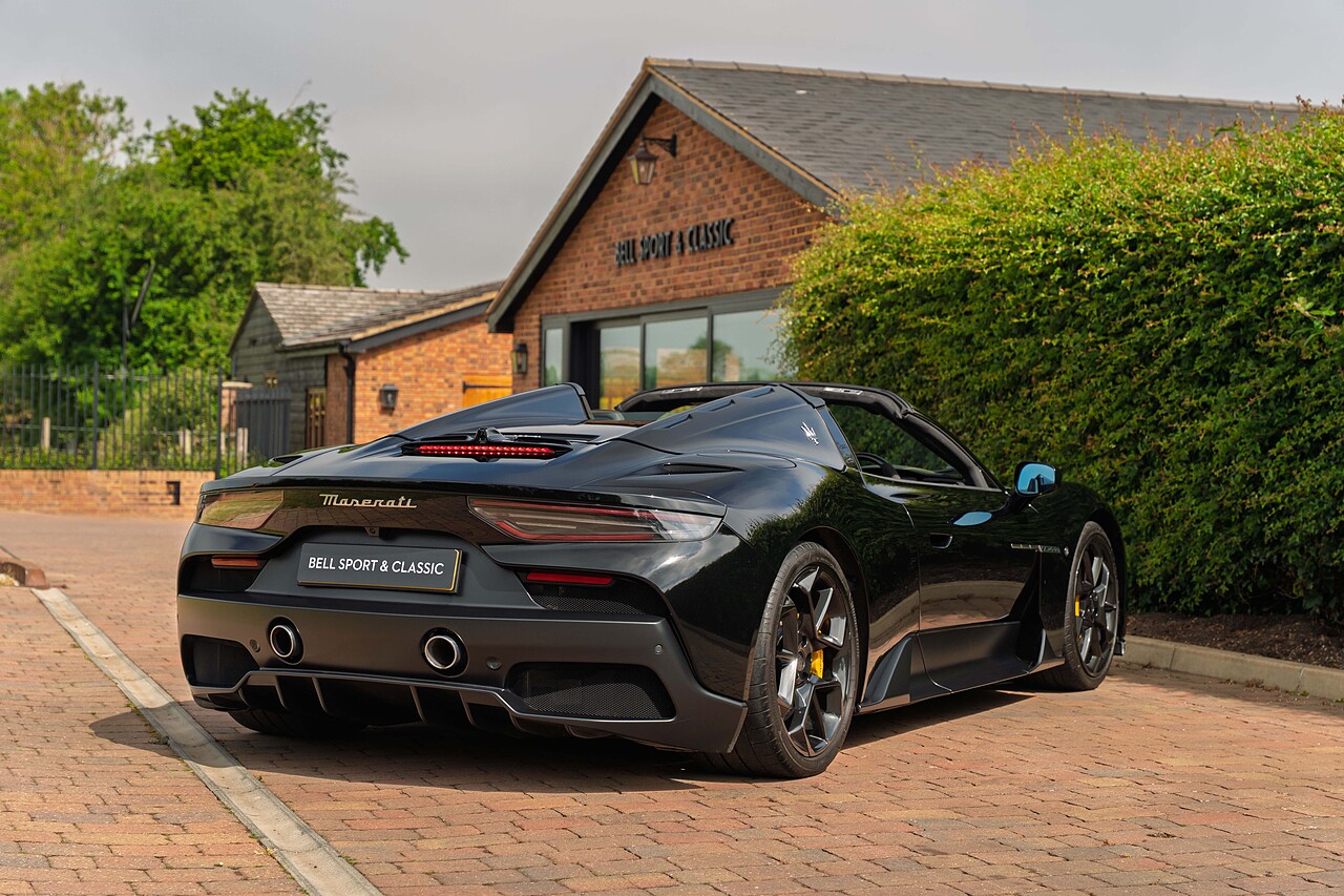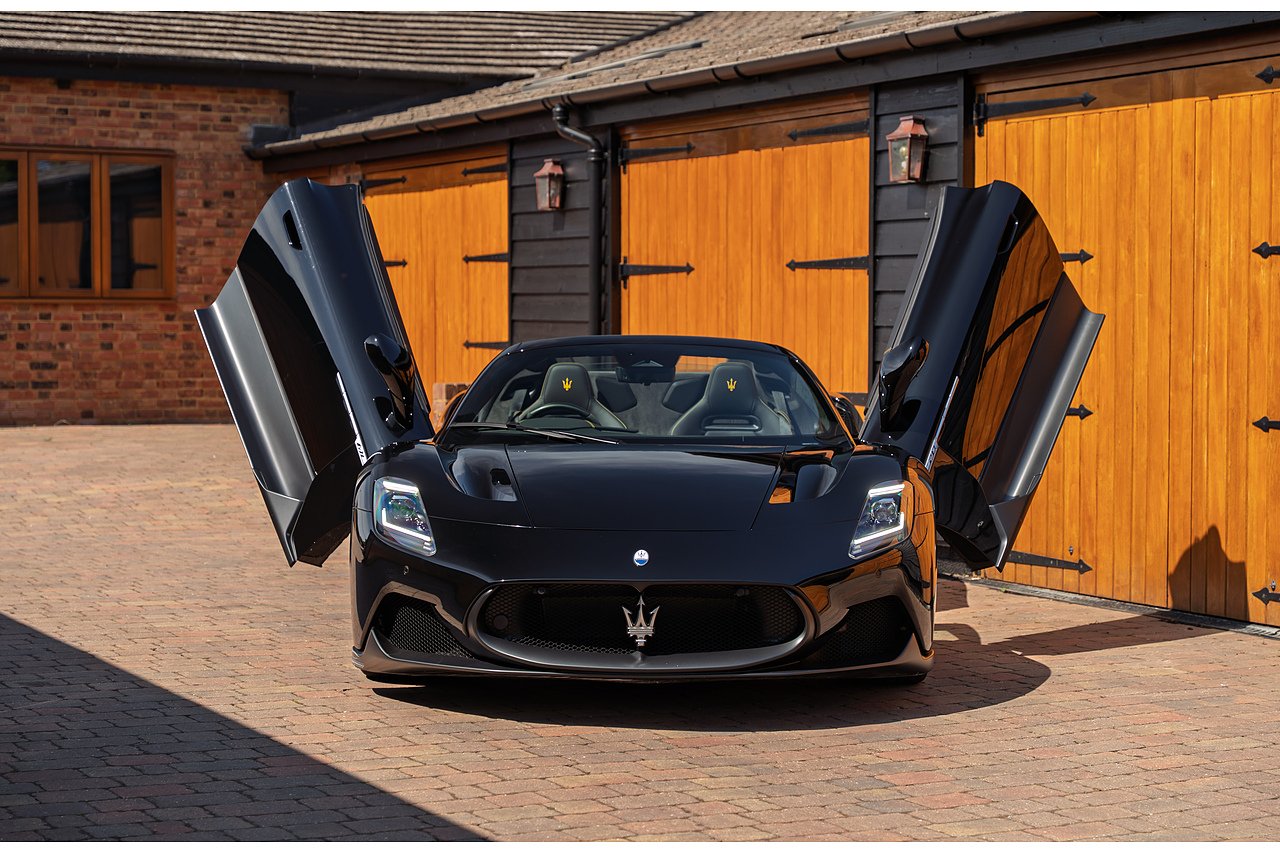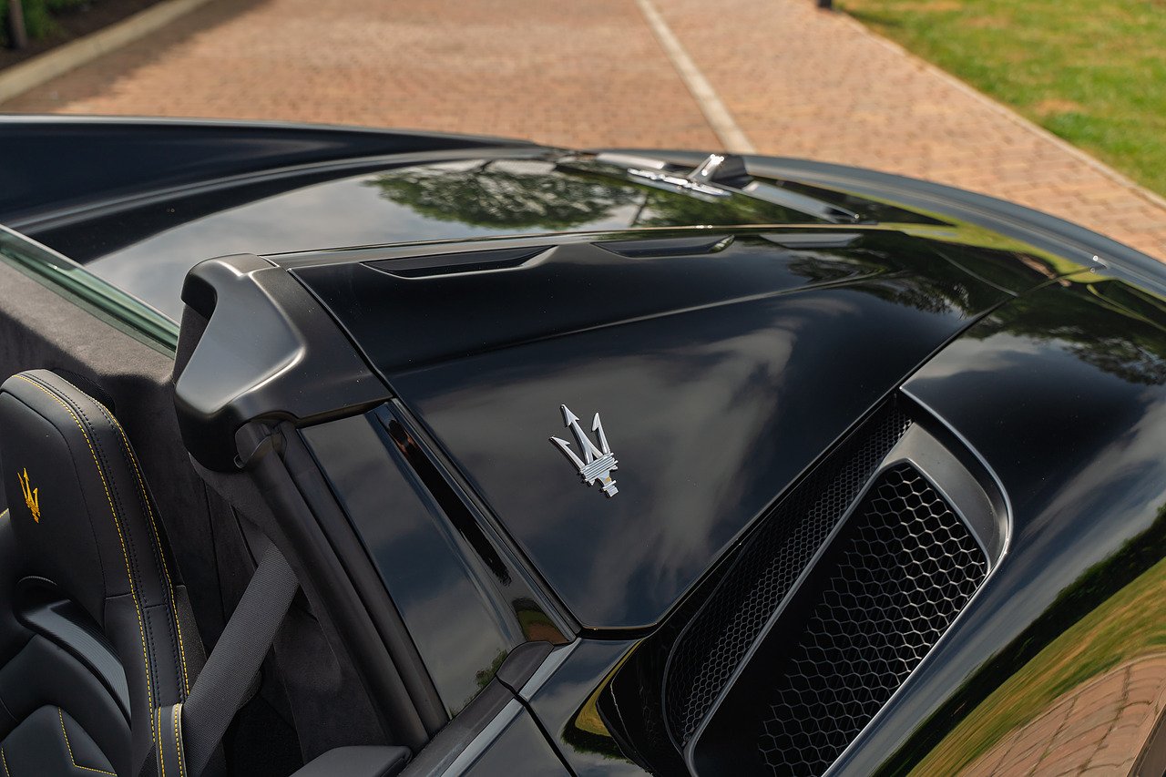 Nero Essenza with Black / Yellow leather interior, Carbon Macrotwill trim, Black carpets. Options include Suspension lift, Carbon ceramic brakes, E-LSD (limited slip diff.) 20” Birdcage Glossy Dark Miron rims, Sonus Faber High Premium Sound System. One owner. 1,800 miles. Full Maserati history. Warranty to March 2027. Service Pack.