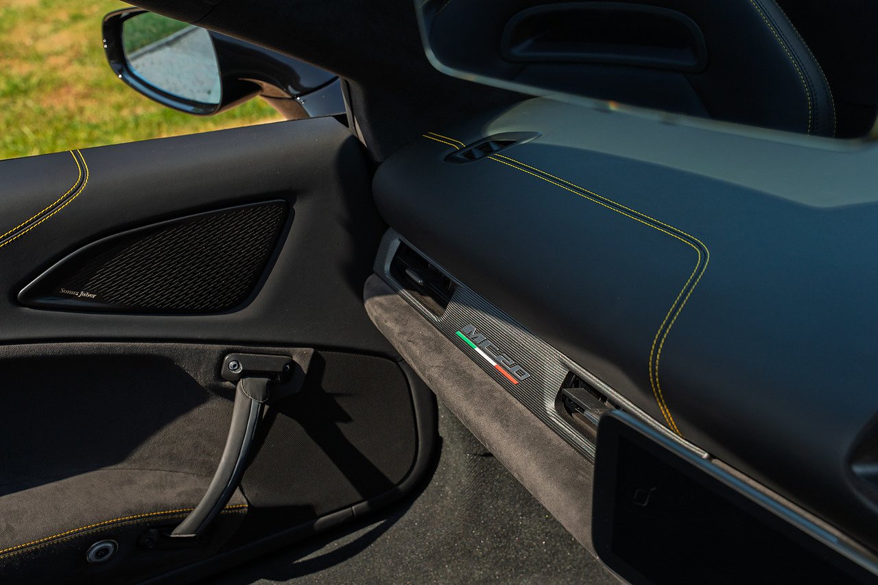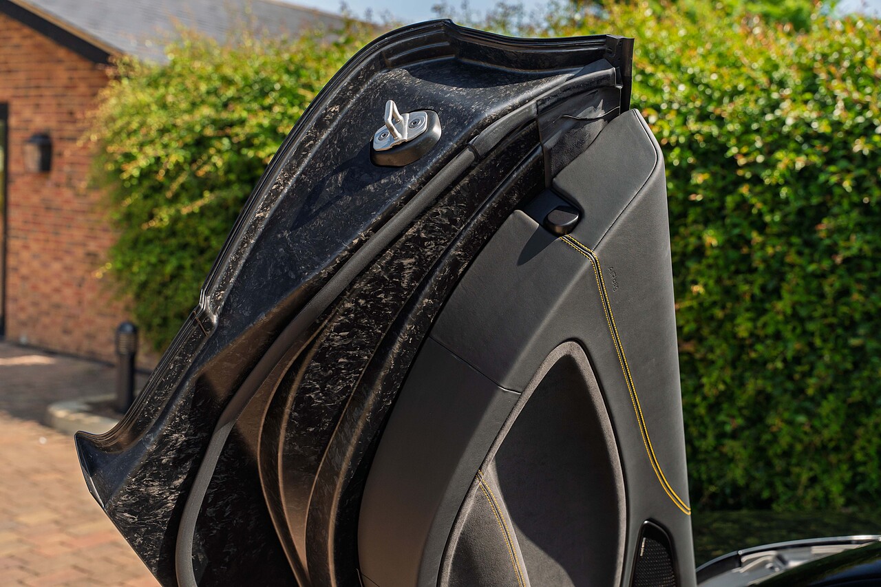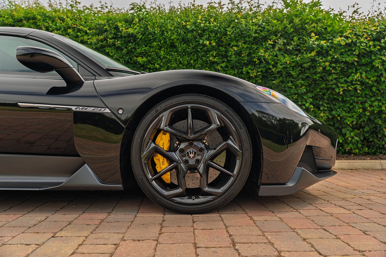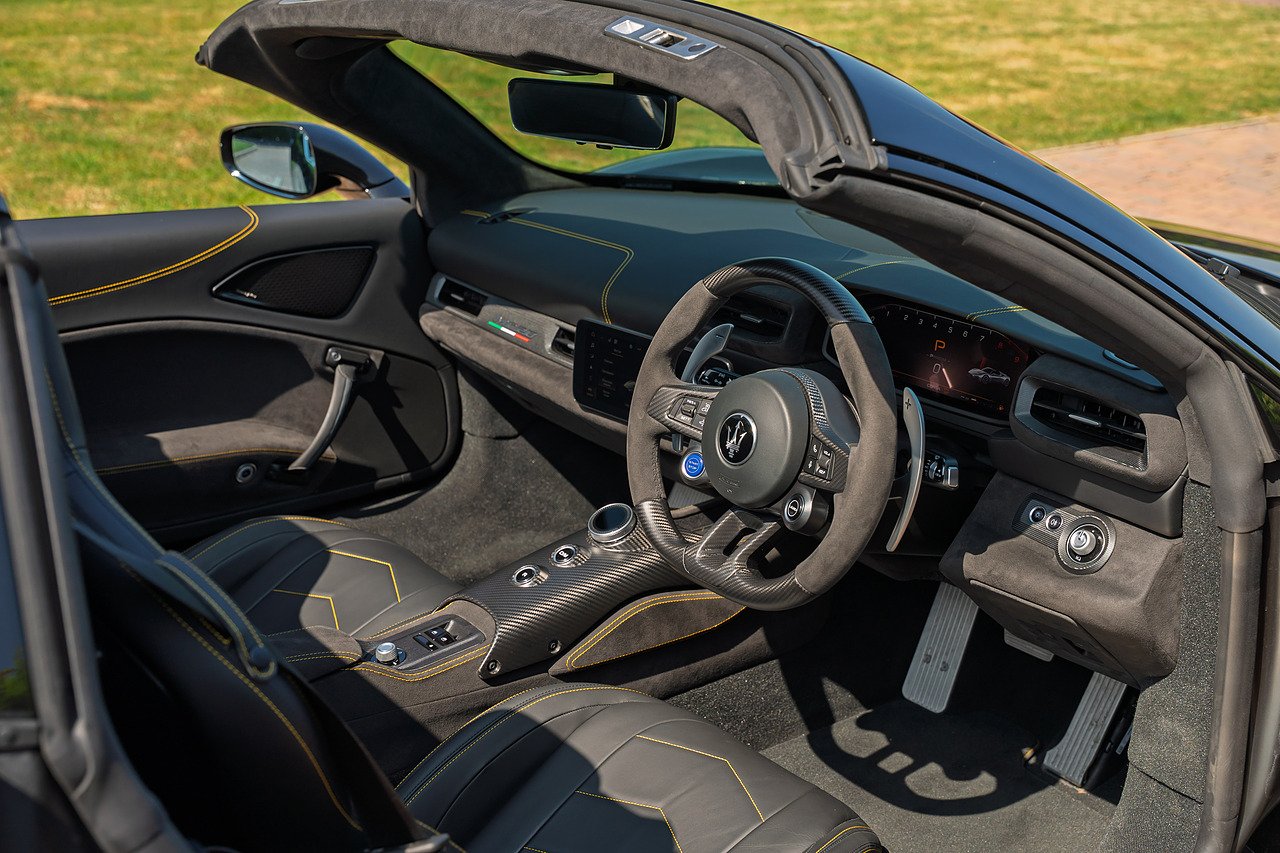 Nero Essenza with Black / Yellow leather interior, Carbon Macrotwill trim, Black carpets. Options include Suspension lift, Carbon ceramic brakes, E-LSD (limited slip diff.) 20” Birdcage Glossy Dark Miron rims, Sonus Faber High Premium Sound System. One owner. 1,800 miles. Full Maserati history. Warranty to March 2027. Service Pack.